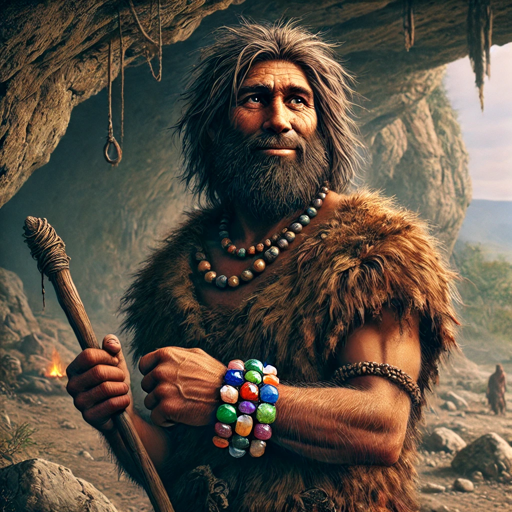 1) 구석기 시대 (기원전 70만년~10,000년경): 뼈나 조개껍데기를 장신구로 사용하였다.