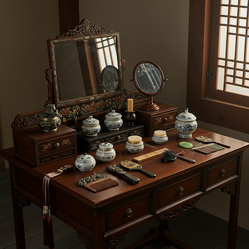 칠보(七寶)로 장식된 목제 화장대 위에는 청동 거울, 옥 조각이 달린 붓, 백분을 담은 작은 용기, 향료를 담은 상자 등이 놓였습니다. 이들은 아침마다 머리를 빗고, 향을 피우며, 옥비녀를 꽂는 것으로 하루를 시작했습니다. 거울은 단순한 도구가 아니라, 마음을 비추는 영적인 매개체로 여겨졌습니다.
