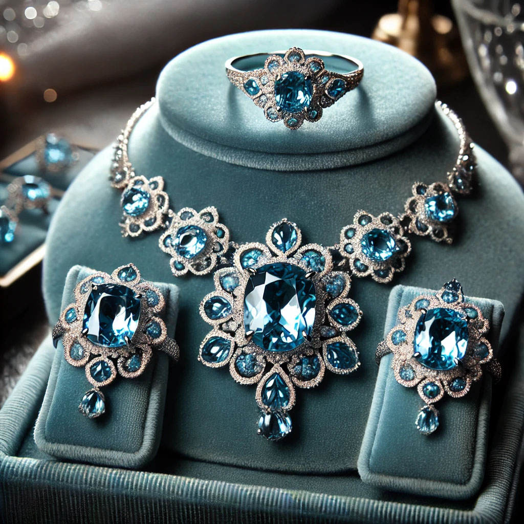 아콰마린 주얼리 세트 – 목걸이, 반지, 귀걸이로 구성된 고급스러운 세트